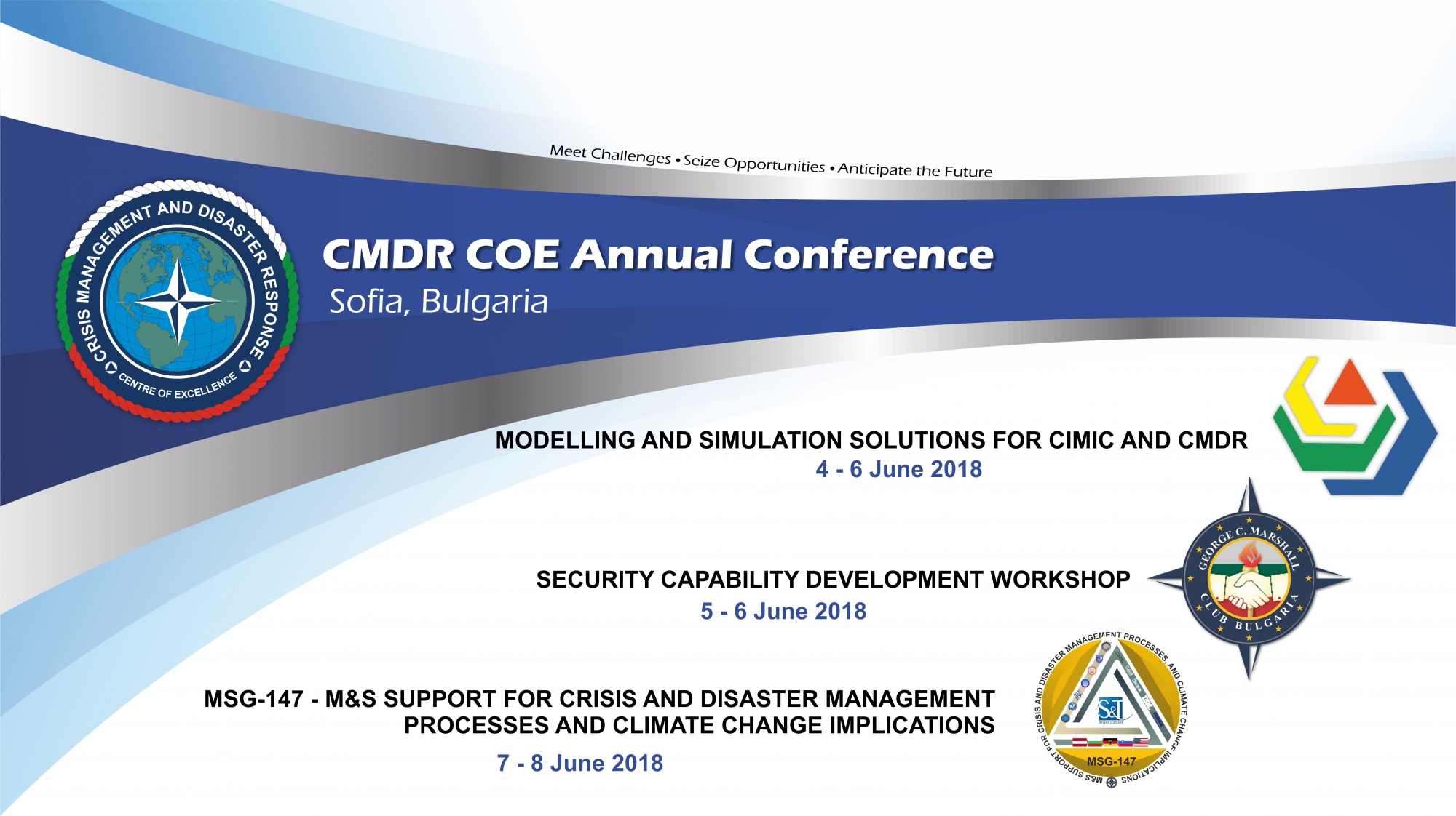 For the first time this year the Conference features two workshops: The George C. Marshall Bulgaria Association and European Centre for Security Studies, Garmisch-Partenkirchen, sponsored Security Capability Development workshop, and the CMDR COE-led MSG-147 - M&S Support for Crisis and Disaster Management Processes and Climate Change Implications. The closely related topic areas of these events feed into the broader perspective the Conference provides bridging policy makers and capability developers via modern technology.