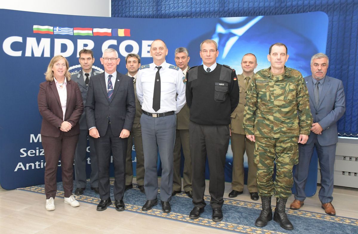 CMDR COE welcomed a Periodic Assessment Team from HQ SACT that conducts periodically an overall assessment of the Centre's capabilities. This year the PA Team included LtC Michael Maus, Section Head (COE Operations), Mr Bruce Hutchison, Staff Officer COE Coordination & AIWG COE Programme Development Branch, and Mrs Rachel Grimes MBE, Strategic Plans and Policy Liaison Officer to the UN, ICRC and NGOs, Lead on Human Security. Their 2-day visit covered constructive discussions and an in-depth review of the continuous development of the CMDR COE since the last periodic assessment. The distinguished inspection received a comprehensive informations on all Centre’s aspects of work by the director, Colonel Nikolov and chiefs of branches of CMDR COE.