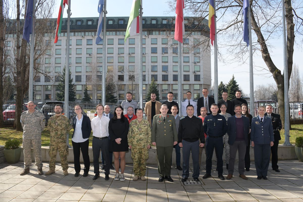 The one-week course approved by NATO on Crisis Management and Disaster Response has ended today March 17th. Civilian and military experts from seven countries followed various lectures provided by experienced instructors from NATO Command Structure and different national and international institutions with responsibilities in crisis and disaster management. The topics discussed included NATO’s Crisis Response System, hybrid threats, military contribution to humanitarian assistance during disasters, gender perspectives and challenges during a crisis and Bulgaria’s Crisis Management System.